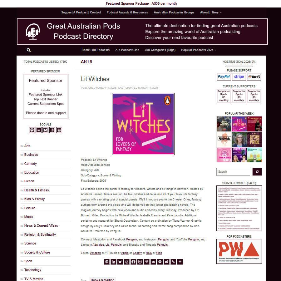 Lit Witches Hosted by Adelaide Jensen, take a seat at The Roundtable and delve into all of your favourite fantasy genres with a rotating cast of special guests...