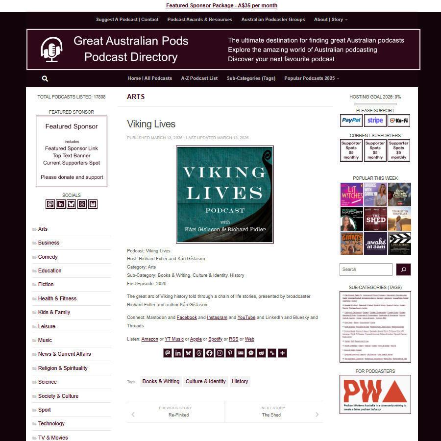 Viking Lives The great arc of Viking history told through a chain of life stories, presented by broadcaster Richard Fidler and author Kári Gíslason...